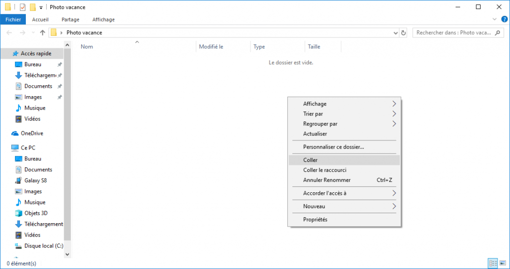 Ensuite soit vous créer un dossier sur votre bureau ou dans le dossier image, puis vous aller coller les photos dedans.